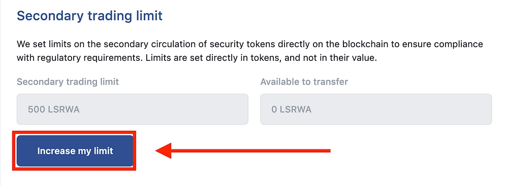If you plan on performing any of these actions, we highly recommend requesting a limit increase on the dashboard. Also note, if you've previously transferred LSRWA Tokens, these transactions will count toward your limit. In this case, you will need to request an increase before using DS Swap.