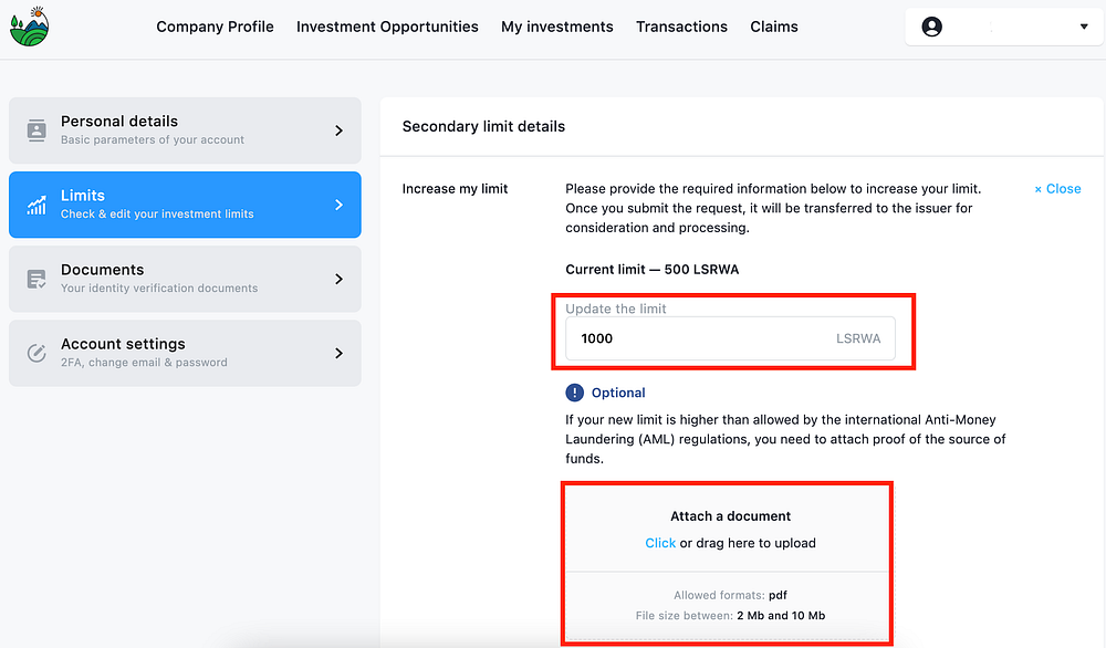 7. Submit your request for a limit increase and wait for Approval. Your request will be processed by the Landshare team.
